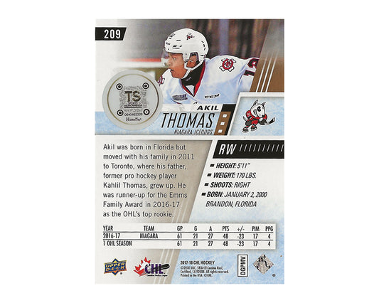 Akil Thomas Autographed 2017-18 Upper Deck CHL #209 Hockey Card