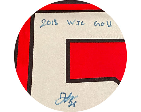 Jordan Kyrou Autographed Team Canada Home Red Nike Jersey Inscribed "2018 WJC Gold"