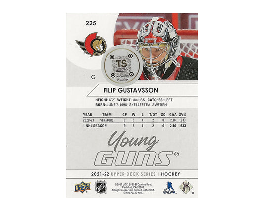 Filip Gustavsson Autographed 2021-22 Upper Deck Young Guns #248 Hockey Card
