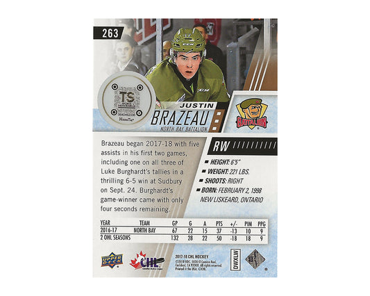 Justin Brazeau Autographed 2017-18 Upper Deck CHL #263 Hockey Card