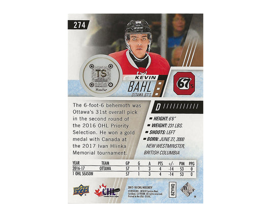 Kevin Bahl Autographed 2017-18 Upper Deck CHL #274 Hockey Card