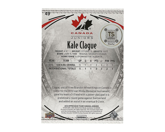 Kale Clague Autographed 2016-17 Upper Deck Team Canada #49 Hockey Card