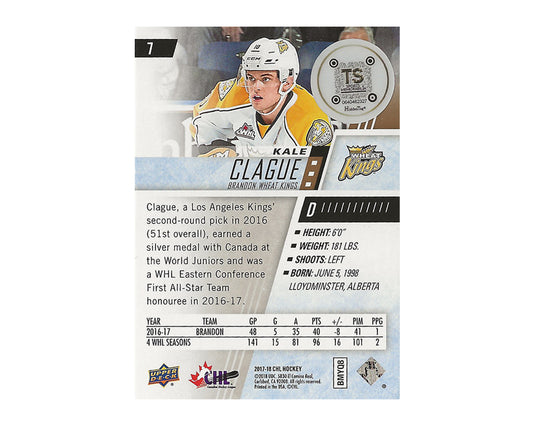 Kale Clague Autographed 2017-18 Upper Deck CHL #7 Hockey Card