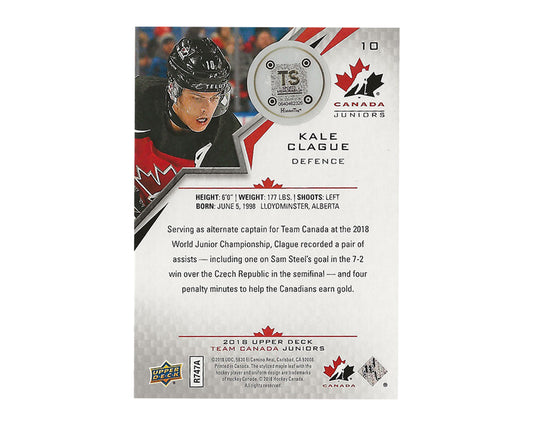 Kale Clague Autographed 2018-19 Upper Deck Team Canada #10 Hockey Card