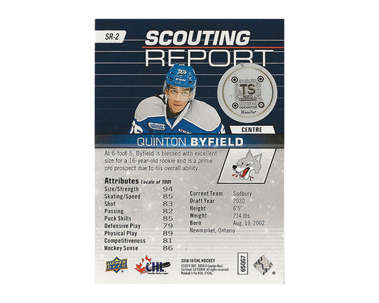 Quinton Byfield Autographed 2018-19 Upper Deck CHL Scouting Report #SR-2 Hockey Card