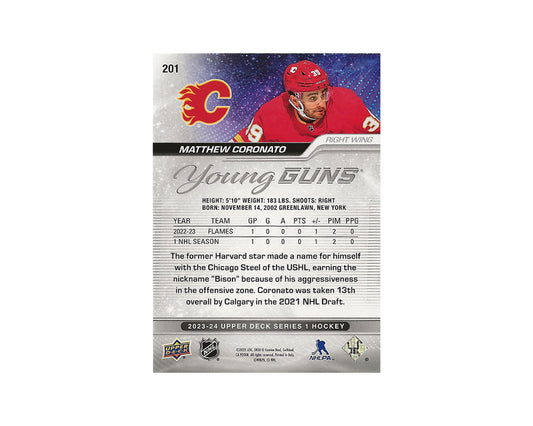 Matt Coronato Autographed 2023-24 Upper Deck Silver Outburst Young Guns #201 Hockey Card