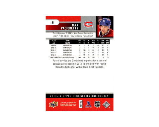 Max Pacioretty Autographed 2013-14 Upper Deck Series 1 #9 Hockey Card