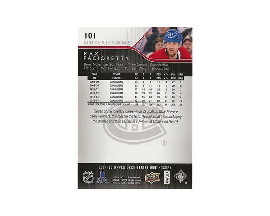 Max Pacioretty Autographed 2014-15 Upper Deck Series 1 #101 Hockey Card