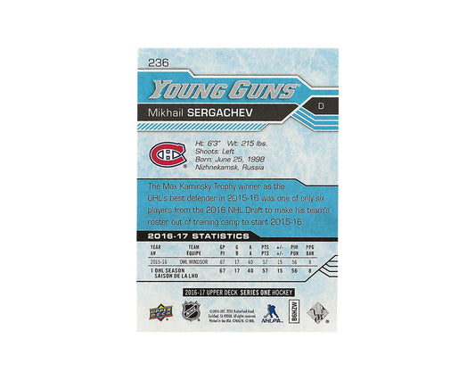 Mikhail Sergachev Autographed 2016-17 Upper Deck Young Guns #236 Hockey Card