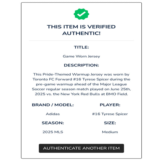 Tyrese Spicer Player-Worn 2025 Toronto FC Adidas Pride Jersey