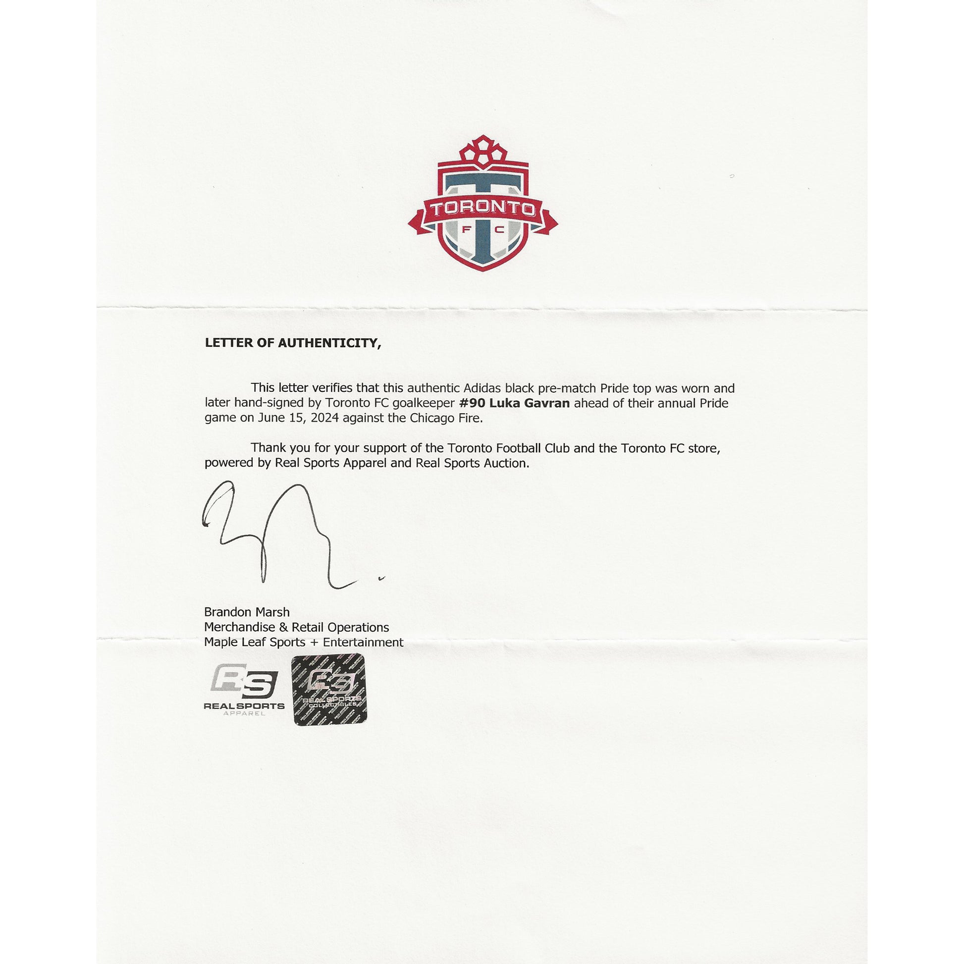 - This piece of signed memorabilia comes with a letter of Authenticity and tamper-proof hologram from MLSE (Maple Leaf Sports + Entertainment).