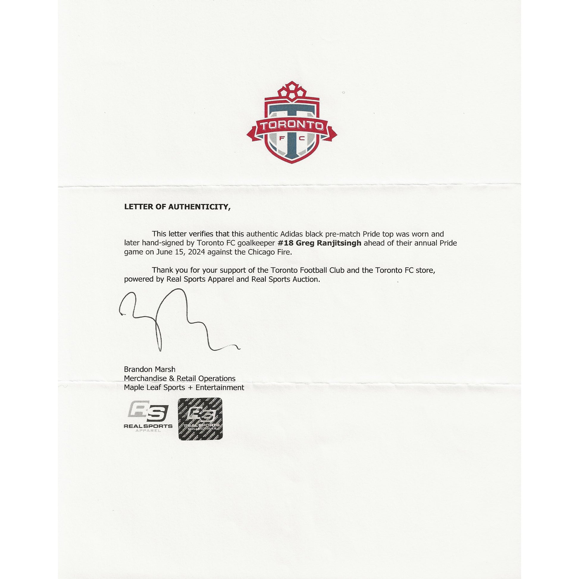 Greg Ranjitsingh Autographed & Player-Worn 2024 Toronto FC Adidas Pride Jersey