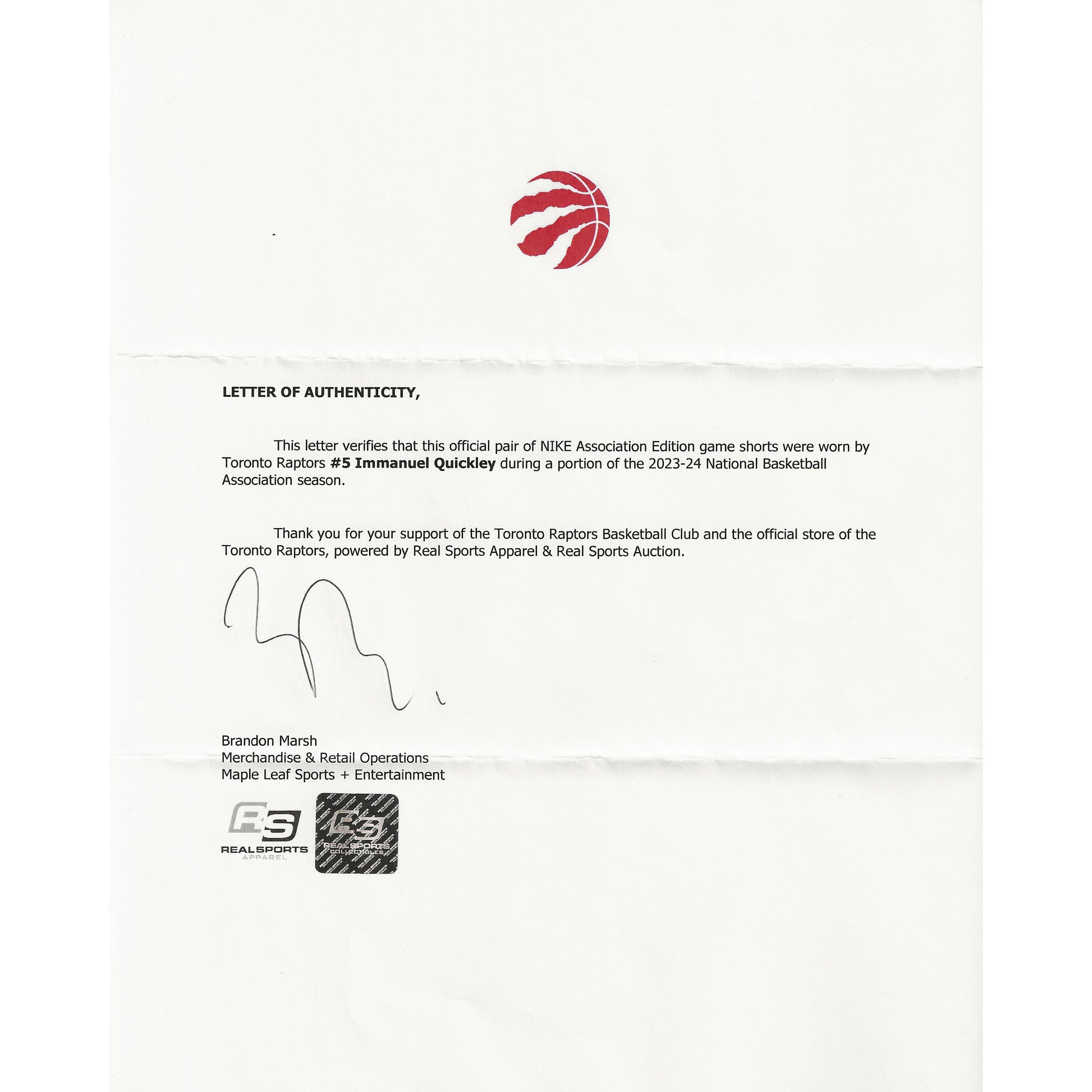- These Toronto Raptors Nike Association Edition Shorts were worn by Immanuel Quickley during a portion of the 2023-24 NBA season.