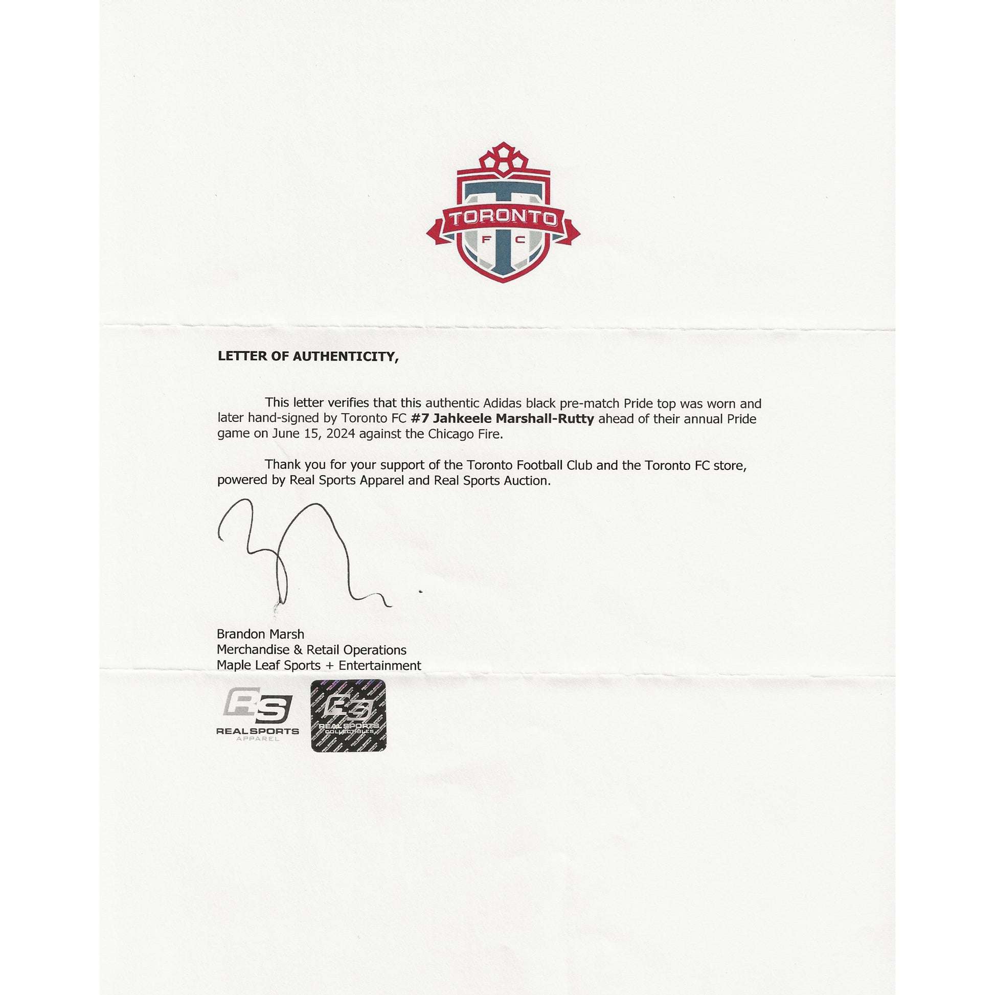 - This piece of signed memorabilia comes with a letter of Authenticity and tamper-proof hologram from MLSE (Maple Leaf Sports + Entertainment).
