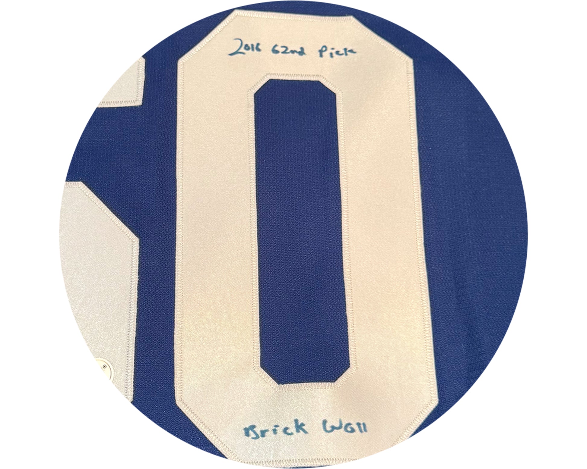 - This Adidas jersey is hand-signed and inscribed by Joseph Woll in fine blue paint pen.