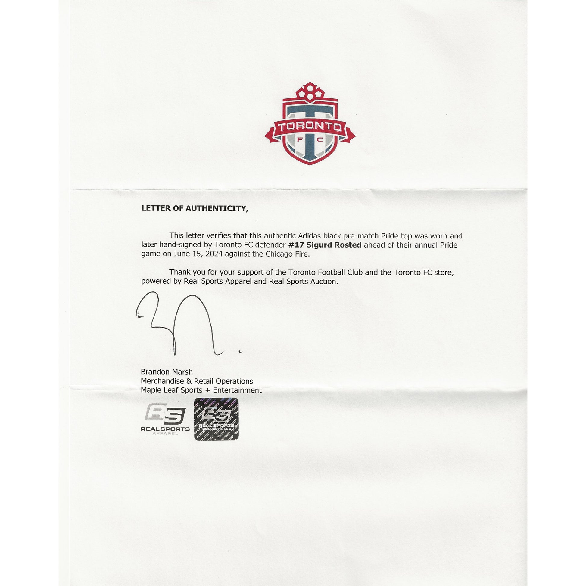- This piece of signed memorabilia comes with a letter of Authenticity and tamper-proof hologram from MLSE (Maple Leaf Sports + Entertainment).